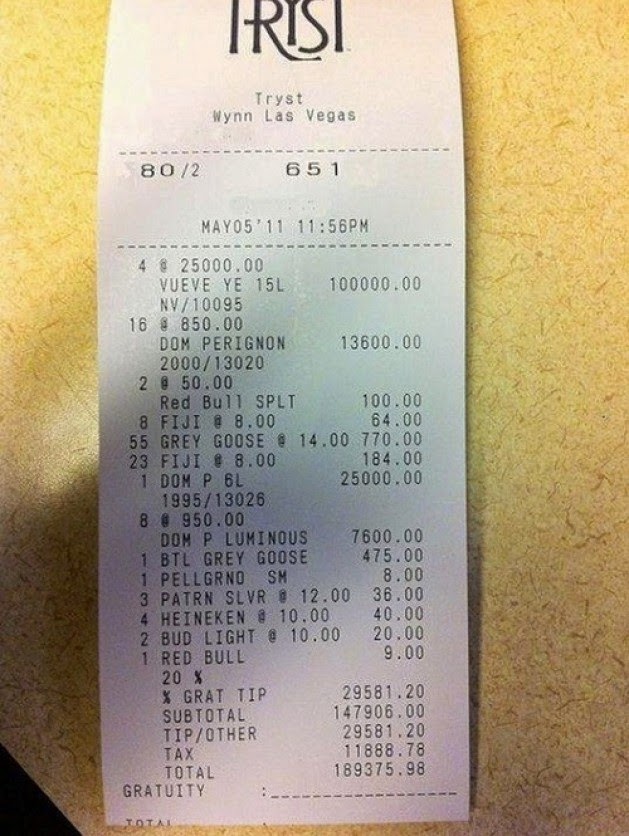 Lebron makes over $17 million a year in just salary and way much more in endorsement deals from big companies like Samsung and Beats by Dre. Lebron has a bar tab of $170,000 which he just needs three days to earn it all back. He bought 33 bottles of Cristal ($285 each), 6 bottles of Patron Tequilla plus a magnum of Grey Goose Vodka. This is actually not all the drinks he bought. Don’t forget to add the generous tip.