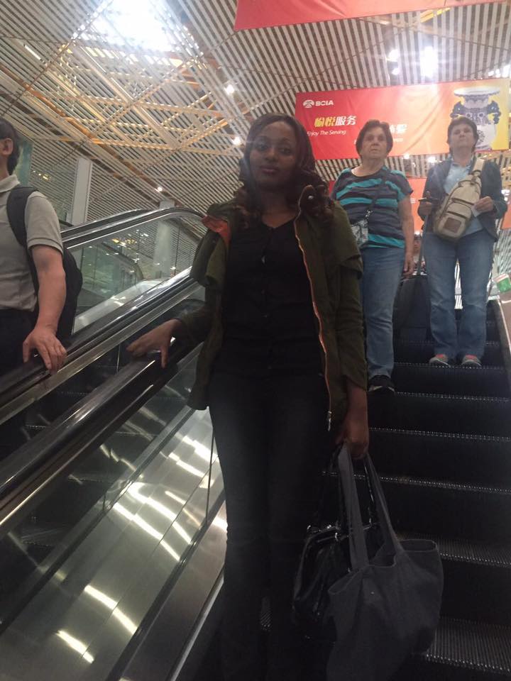 Well Seveline is now in China. She posted a couple of pictures on her Facebook page as she departed and when she was in China. Sam Gichuru was at the airport to see her off. He wrote this one Facebook: