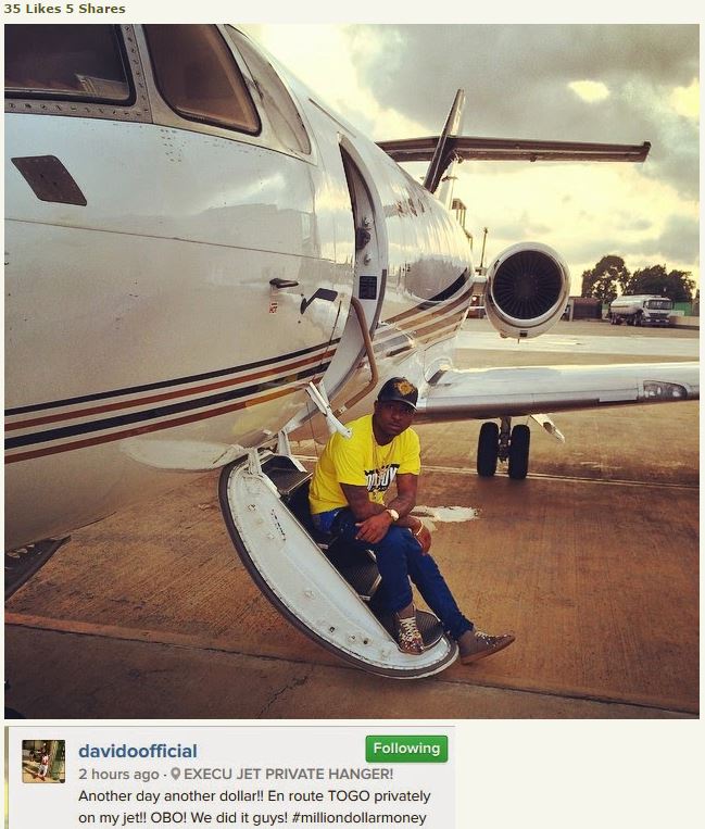 Davido, a Nigerian musician, is one of the most successful musicians in Africa at just 21 years of age and definitely makes a lot of money. He also comes from a very wealthy family. His father Chief Adeleke is a Nigerian billionaire businessman. Davido took to Instagram to share a photo of his new private jet. Check it out