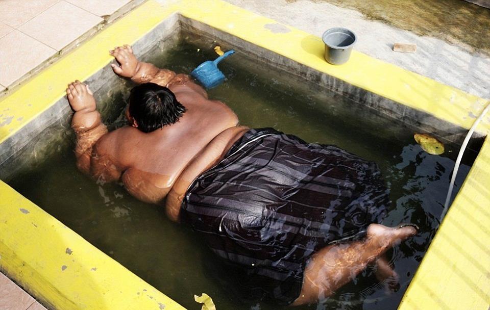 “He is always tired and complains of shortness of breath. He only eats and sleeps and when he is not done with both, he jumps into the bathtub and stays there for hours.”
