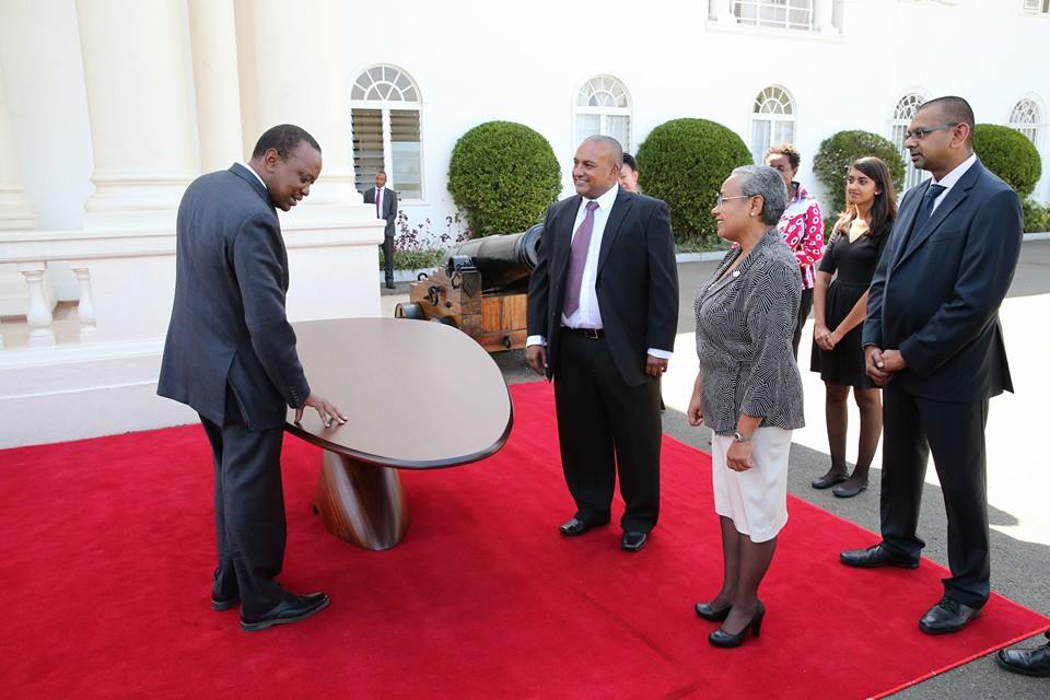 Ramara Limited were recently at State House to showcase their new designer table that is worth around Ksh2.9 million. They were the winners of the Design Quest Award back in 2010, for creativity, aesthetics and functional art. Check out President Uhuru admiring the table.